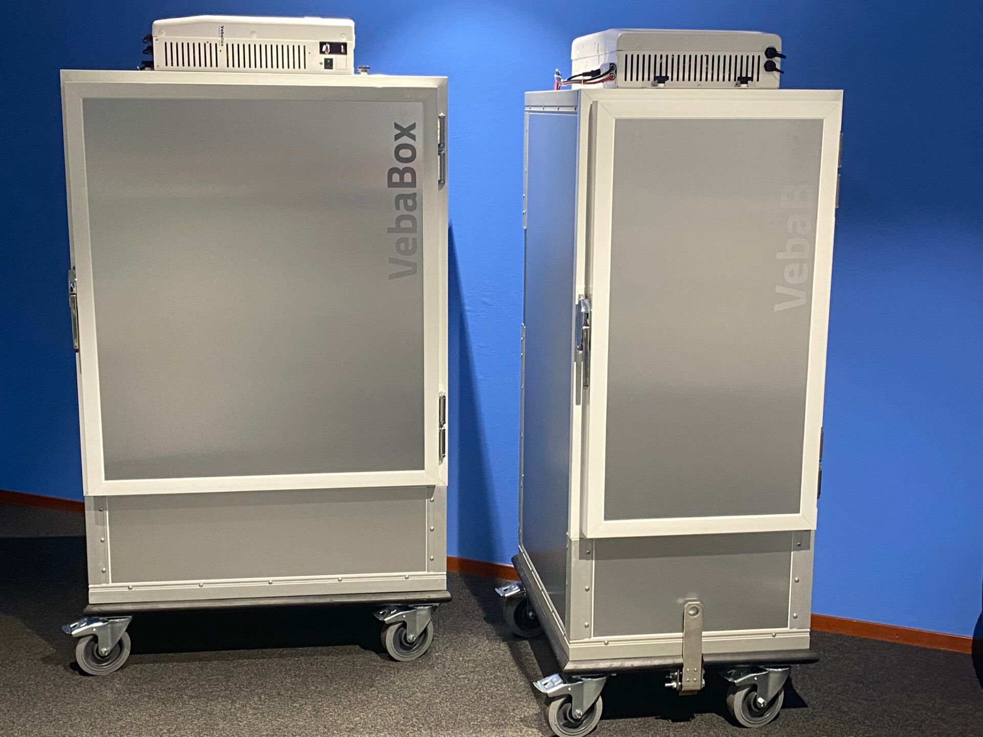 VebaBox as a mobile cooling solution is always part of the Custom Line. It can be tailor-made to match specific needs, workflows, or handling processes, and can be equipped with a pallet base or wheels, like a roll container. This makes the mobile VebaBox easy to move during operations or to place in and out of a vehicle as needed.